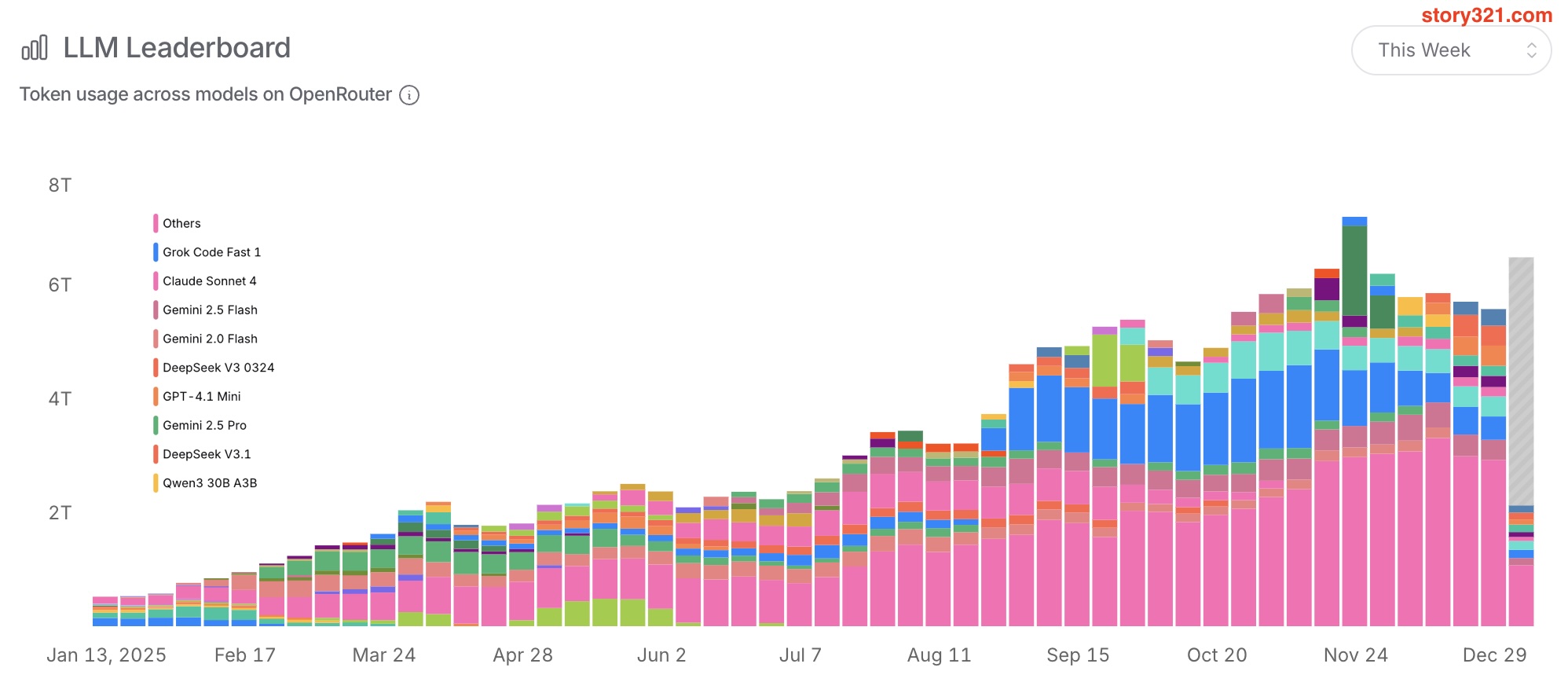 2026'ya adım atarken, OpenRouter'dan alınan 2025 yılı token kullanım verilerine baktığımızda, patlay